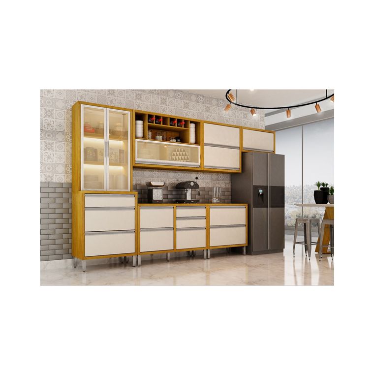 Kit Cozinha Nicioli Salsa Pta Fechada - Ipe/Off White Pta Fechada