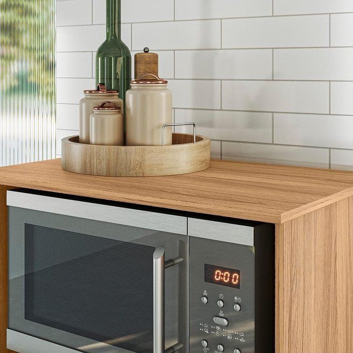 Portas: O balcão conta com uma porta fechada que oferece mais privacidade e proteção para seus utensílios e alimentos, mantendo a cozinha mais arrumada. A porta é prática e possui abertura suave, sem comprometendo o espaço ao redor do móvel.