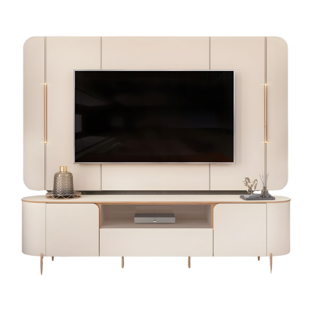 painel complementa o conjunto de forma elegante, criando um espaço organizado e