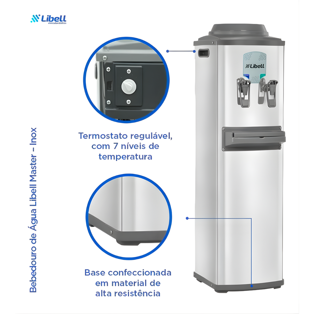 O Bebedouro de Água Libell Master Inox é a solução ideal para quem busca qualidade, resistência e eficiência no fornecimento de água natural e gelada. Com design em inox, alto desempenho de refrigeração e excelente durabilidade, ele atende perfeitamente ambientes com uso frequente, oferecendo praticidade, economia e confiança para o dia a dia.