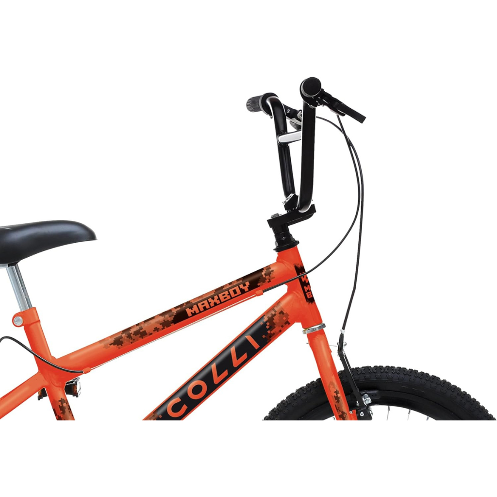 Com acabamento em Laranja Neon D, a Colli Max Boy se destaca pelo visual esportivo e agressivo, que agrada em cheio ao público infantil. Os detalhes em grafismo tornam a bicicleta ainda mais atrativa e cheia de personalidade.