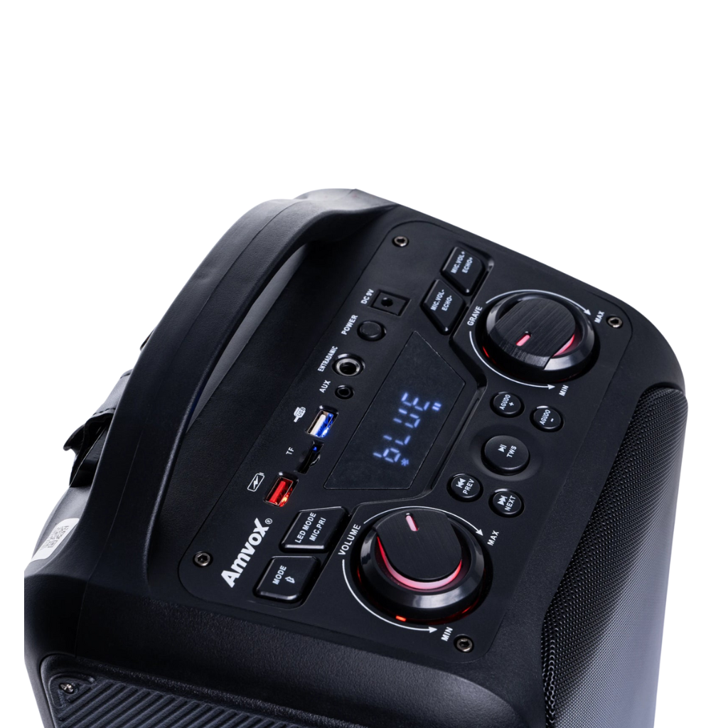 A Amvox ACA 600 Bagvox Black é uma caixa de som amplificada que une potência,