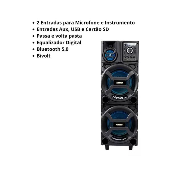 A Caixa de Som Amvox ACA 1402 Titan Black é a escolha ideal para quem busca potência, qualidade sonora e design moderno, garantindo som forte e envolvente para qualquer ambiente.