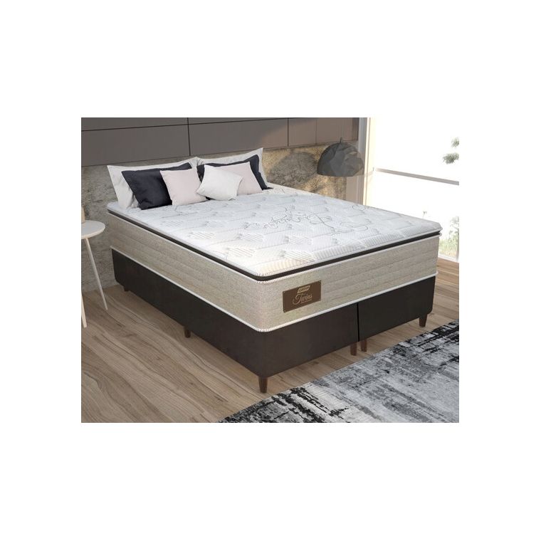 Cama Box King Universal Convencional Suede Liso + Colchão Molas Ensacadas Twins - Gazin 193cm