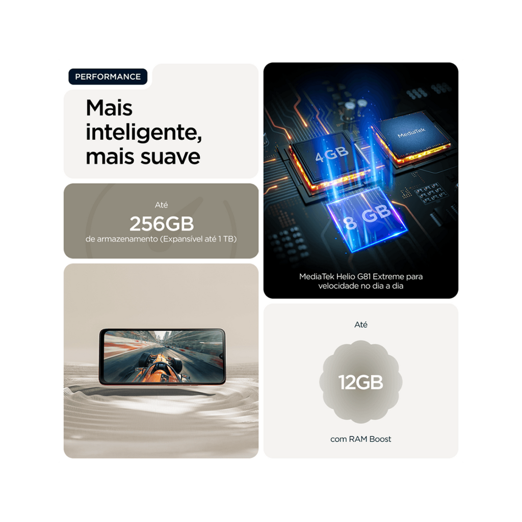 O Motorola Moto G06 256GB é um smartphone desenvolvido para oferecer amplo