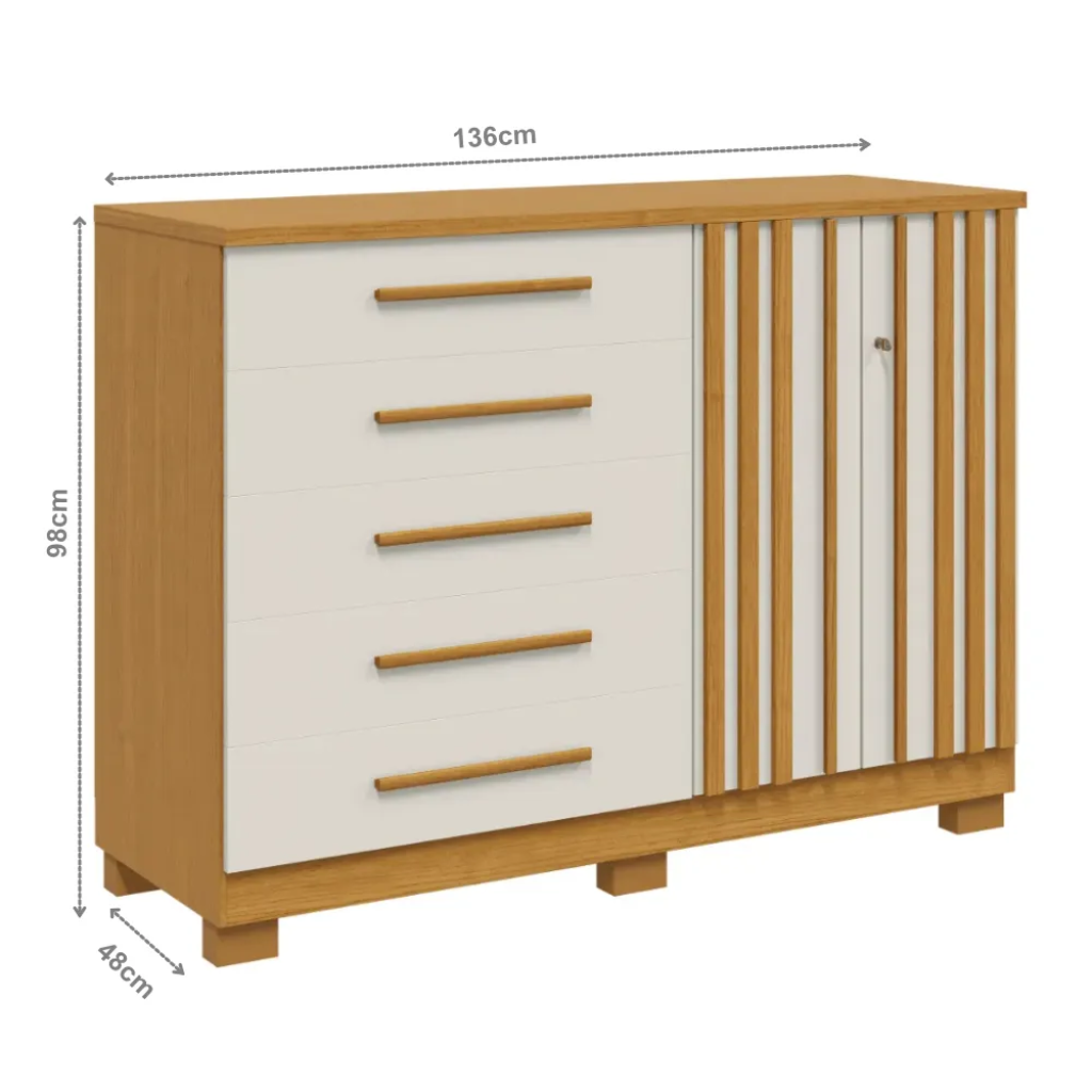 Equipada com 5 gavetas espaçosas, a cômoda oferece
