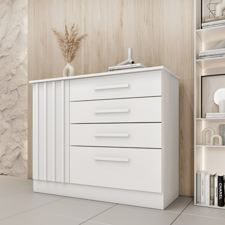 A Cômoda Tcil Guarani 4 Gavetas Com Pés - Neve/Neve é perfeita para quem deseja unir organização, praticidade e sofisticação em um único móvel. Com seu design clean e acabamento refinado, ela transforma qualquer ambiente, deixando o quarto mais bonito, funcional e acolhedor.