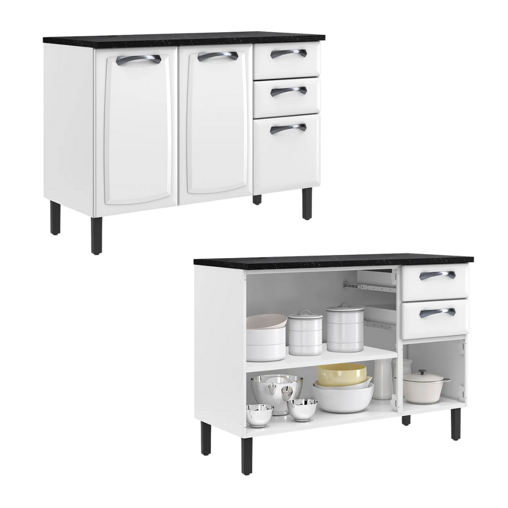 peça versátil que pode ser utilizada com tampo (não incluso) ou integrada a