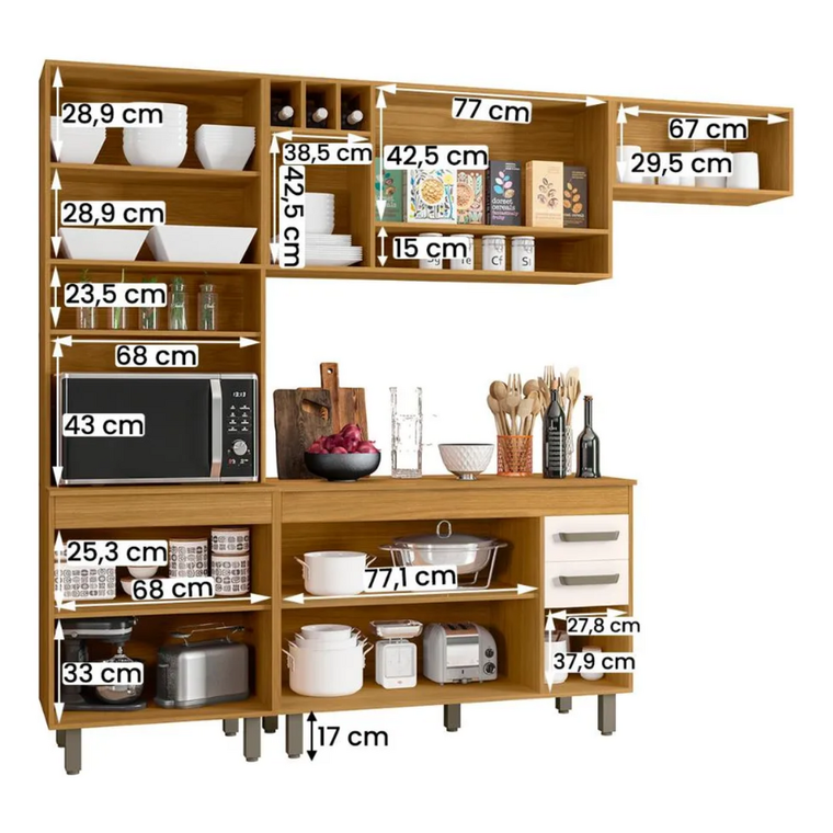 facilitar a organização da cozinha. Conta com armários superiores e inferiores