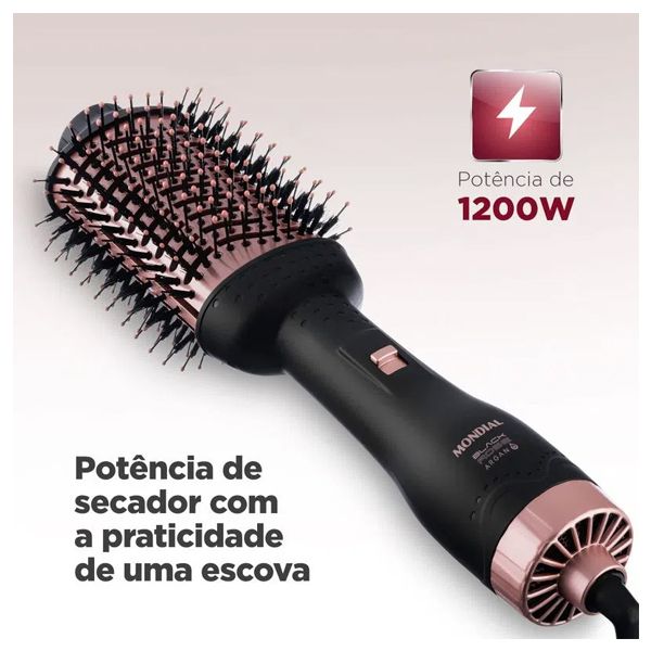 dos cabelos. Com um design moderno e funcional, essa escova secadora combina a