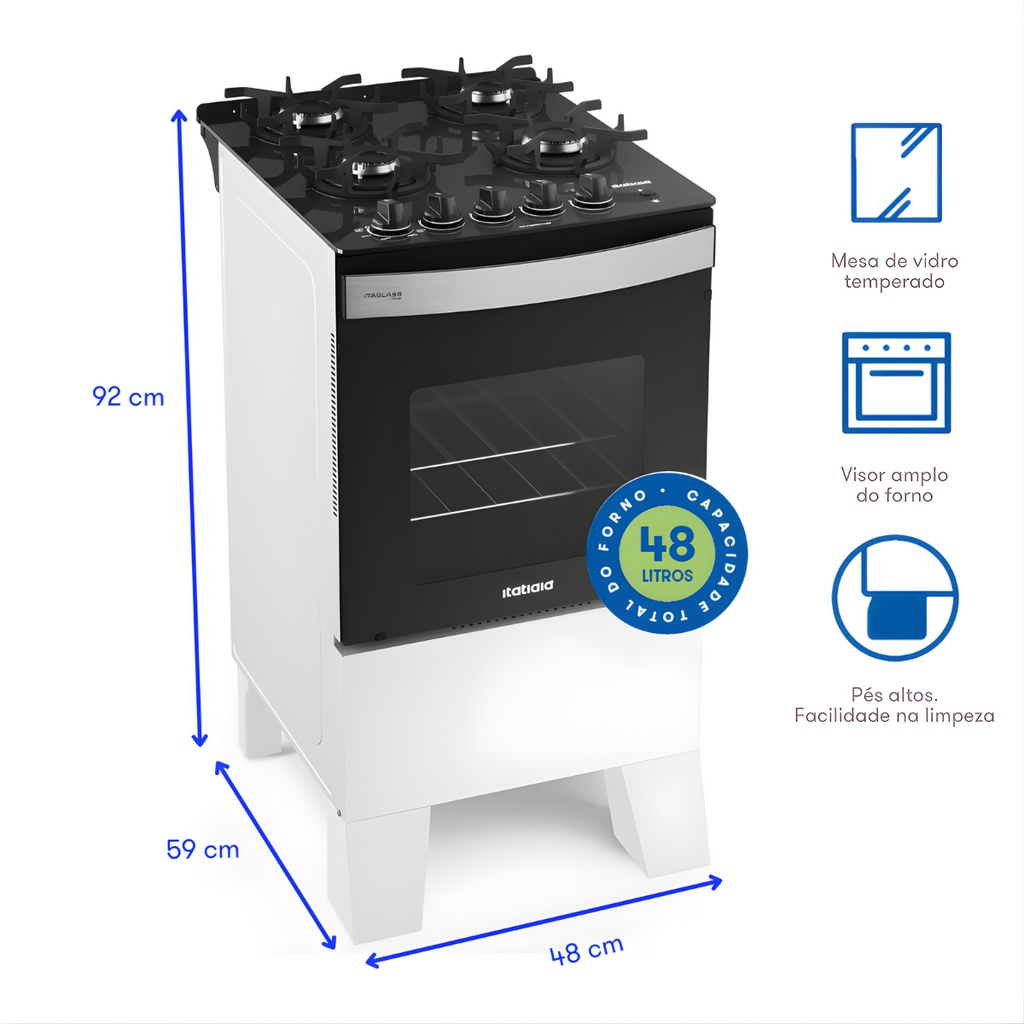 O Fogão Itatiaia 4 Bocas Itaglass Plus Branco é a escolha ideal para quem busca um eletrodoméstico funcional, elegante e eficiente. Com design moderno e recursos práticos, ele atende perfeitamente às necessidades do dia a dia, agregando beleza e desempenho à sua cozinha.