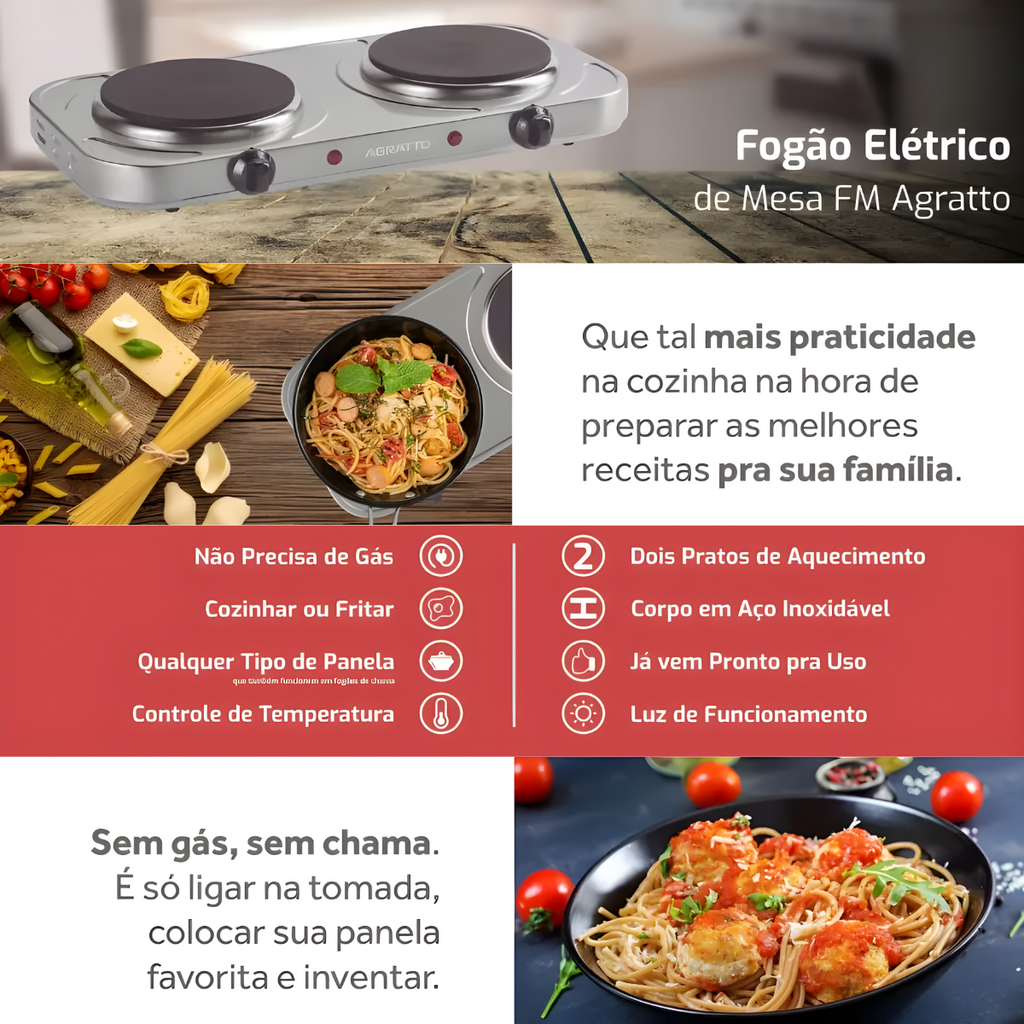 O Fogão Elétrico de Mesa Agratto FM-02 é a escolha ideal para quem