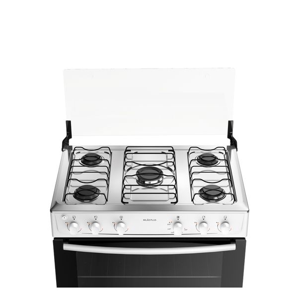 cozinha. Com 5 bocas, este fogão oferece amplo espaço para preparar múltiplos