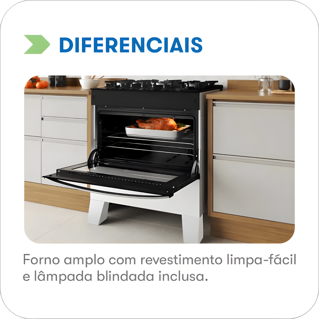 O Fogão Itatiaia 5 Bocas Itaglass Plus Branco é ideal para quem busca alto desempenho, forno amplo e um acabamento claro e moderno. Com recursos que facilitam o dia a dia e garantem segurança e eficiência, ele é uma excelente opção para deixar sua cozinha mais funcional, organizada e elegante.
