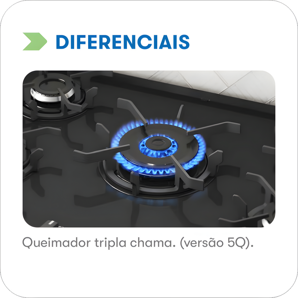 tripla chama, ideal para receitas que exigem maior potência e rapidez no
