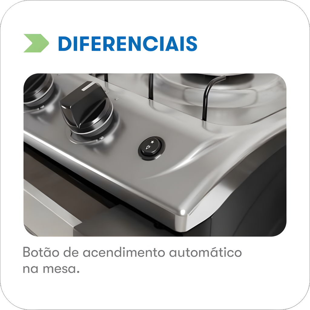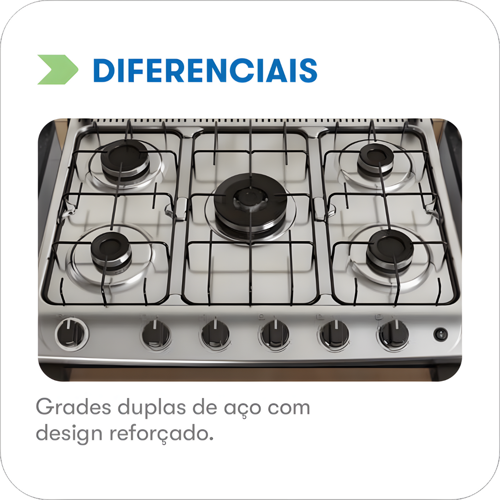 O modelo conta com 5 bocas, oferecendo maior versatilidade para o preparo de