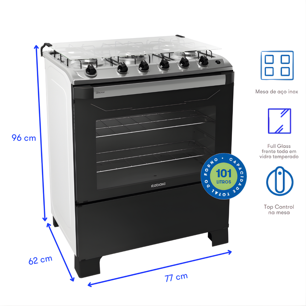 O Fogão Itatiaia 5 Bocas New Dream Branco é uma excelente opção para quem procura um eletrodoméstico completo, funcional e com design moderno. Ideal para cozinhas que exigem maior capacidade, desempenho e praticidade, ele oferece tudo o que é necessário para tornar o preparo das refeições mais eficiente, organizado e agradável.