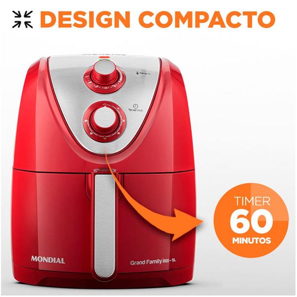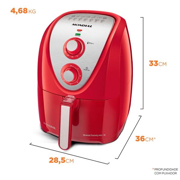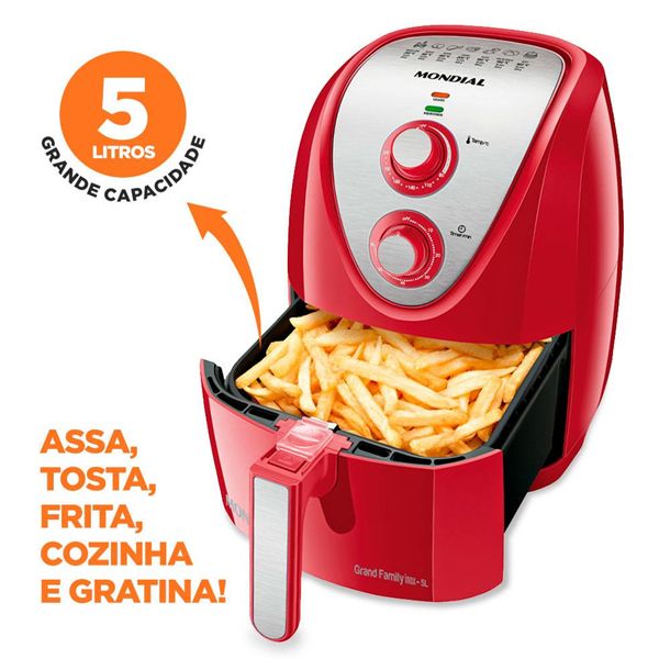 Fritadeira Elétrica Mondial Sem Óleo Air Fryer Grand Family AFN-50-RI - Vermelha/Inox