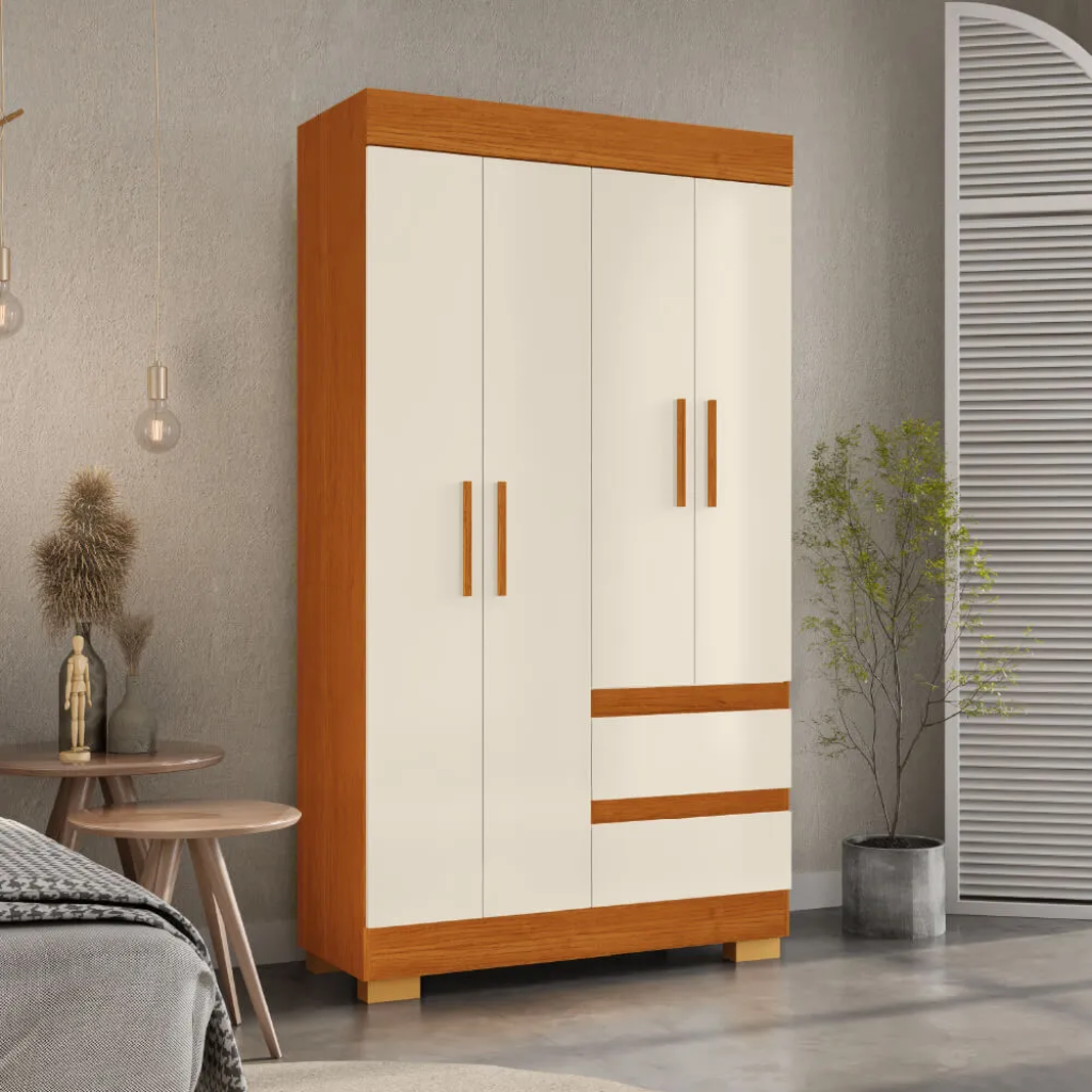 O Guarda-Roupas ACP Maya 4 Portas MDP - Cinamomo/Off White é a união perfeita de praticidade e estilo, garantindo que seu quarto fique mais organizado e com um toque especial de sofisticação.