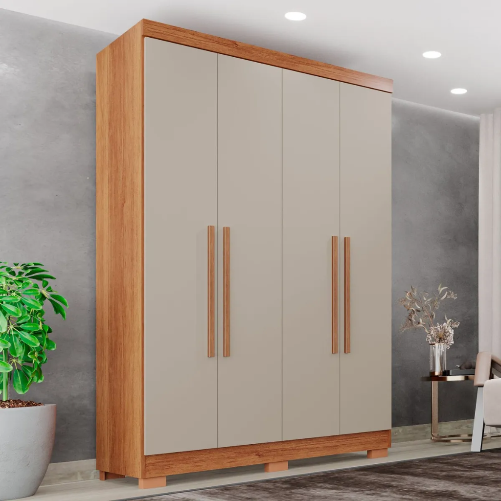 O Guarda-Roupas Salleto Recife 4 Portas com Pés – Cinza/Off White é