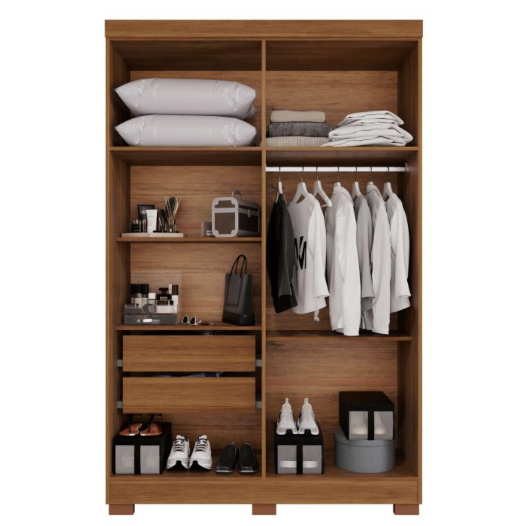 espaço interno bem distribuído, ideal para acomodar roupas, acessórios e itens