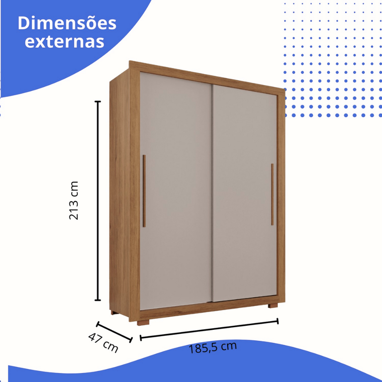 Roupeiro / Guarda Roupas Josan Dominum 2 Portas, Com Pé, Com Espelho - Am/Off