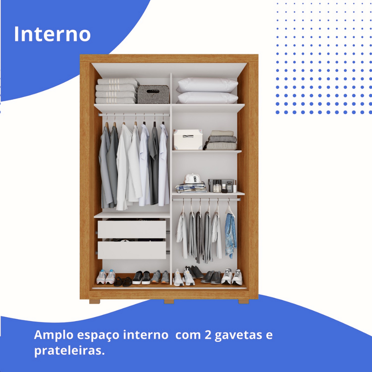 Guarda Roupas / Roupeiro Salleto Panama 2 Portas Com Espelho - Cinamomo