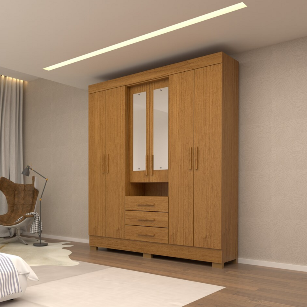 Com o Guarda-Roupas ACP Débora 6 Portas com Espelho, seu quarto ganha não só mais espaço de armazenamento, mas também um toque de charme e modernidade.