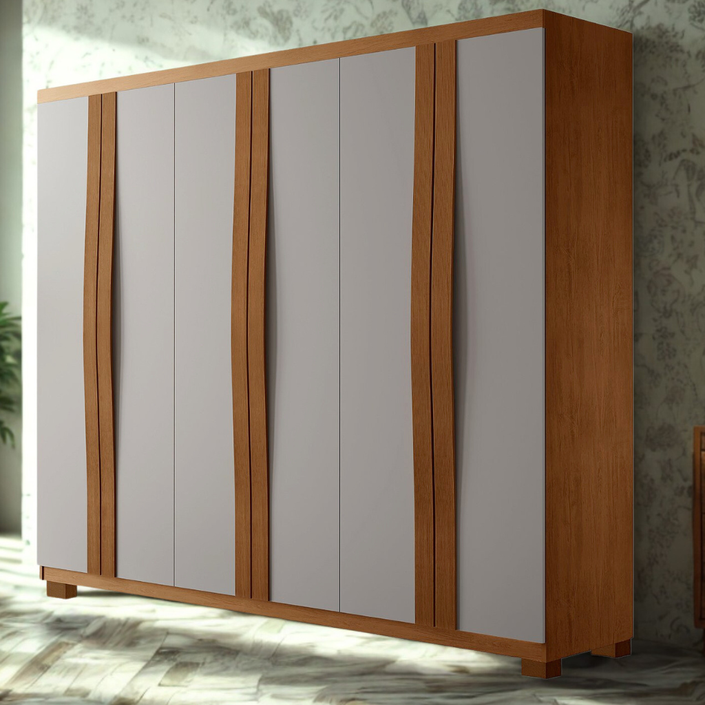 Guarda roupas/Roupeiro Tcil Sevila 6 Portas Com 8 Pés - Cinamomo/Off White