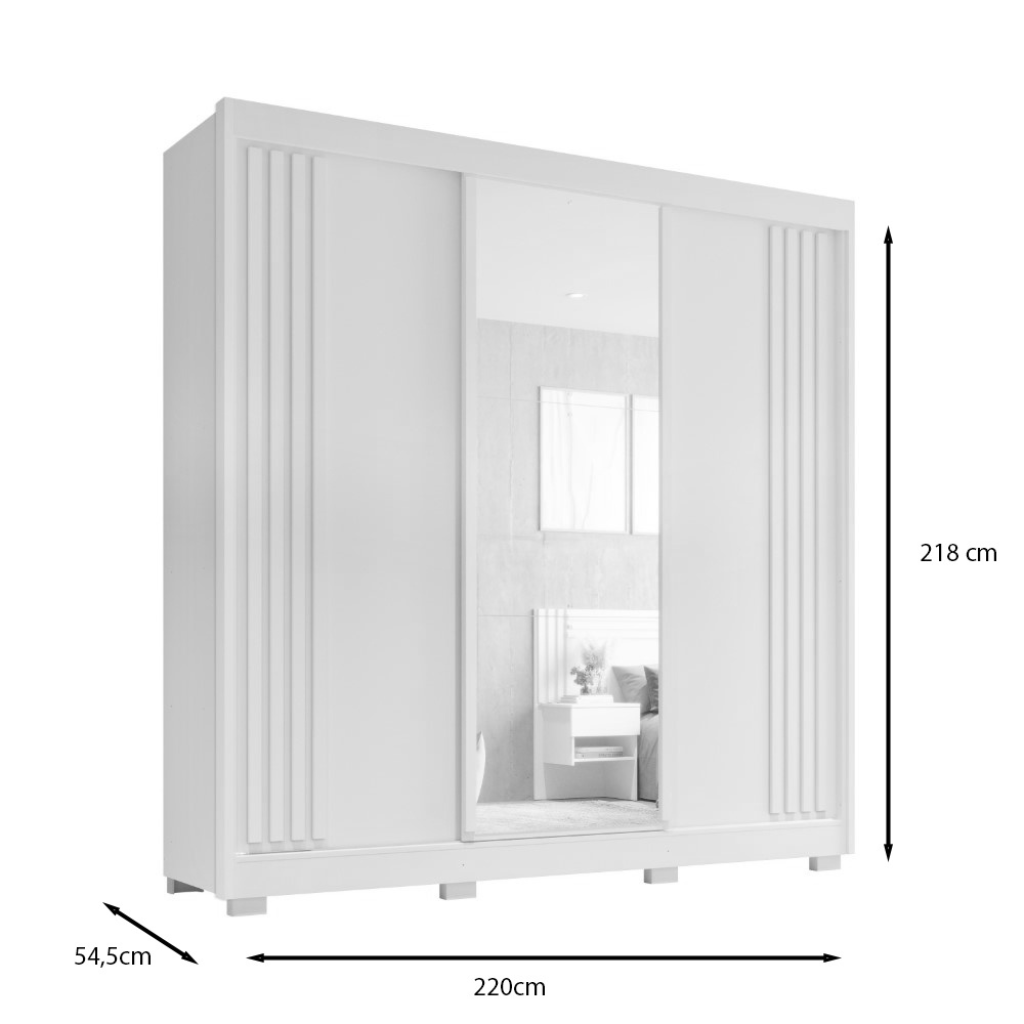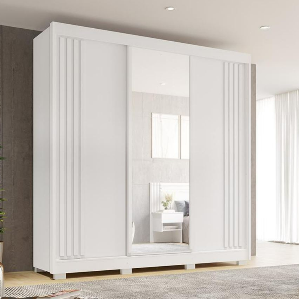 Roupeiro Salleto Atenas 3 Portas com Pés e Espelho – Branco
