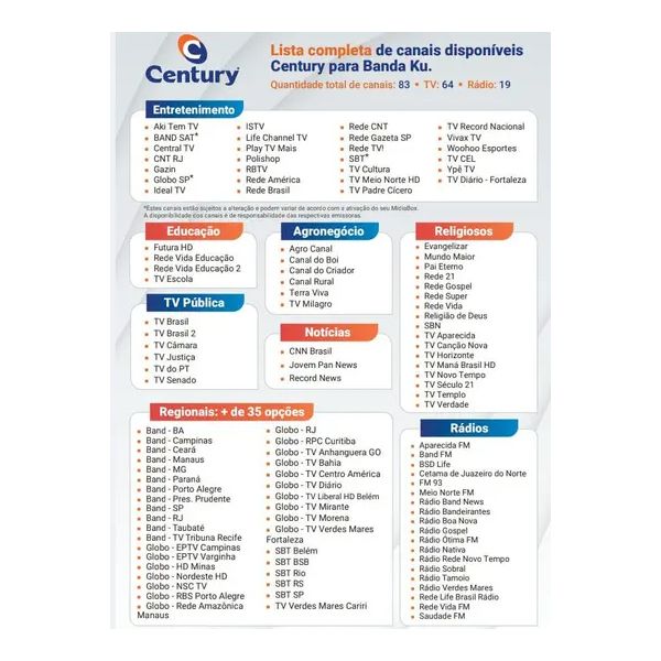 Para alguns estados, a Century recomenda o uso de antenas maiores. Para o