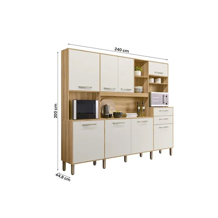 Kit Cozinha Nicioli Hortela - Freijo/Off White Cristal Pta Fechada