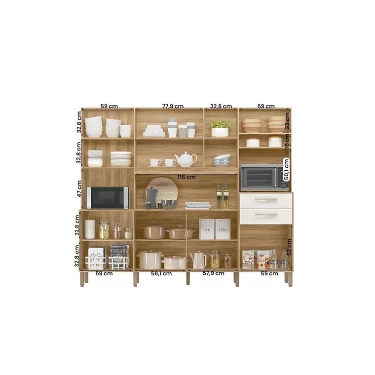 distribuídas e nichos que facilitam a organização de panelas, pratos,