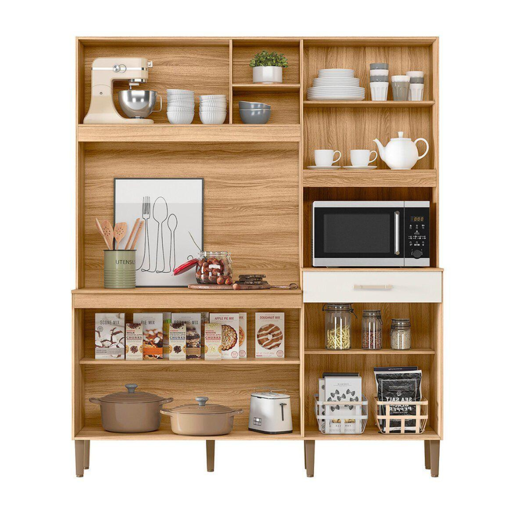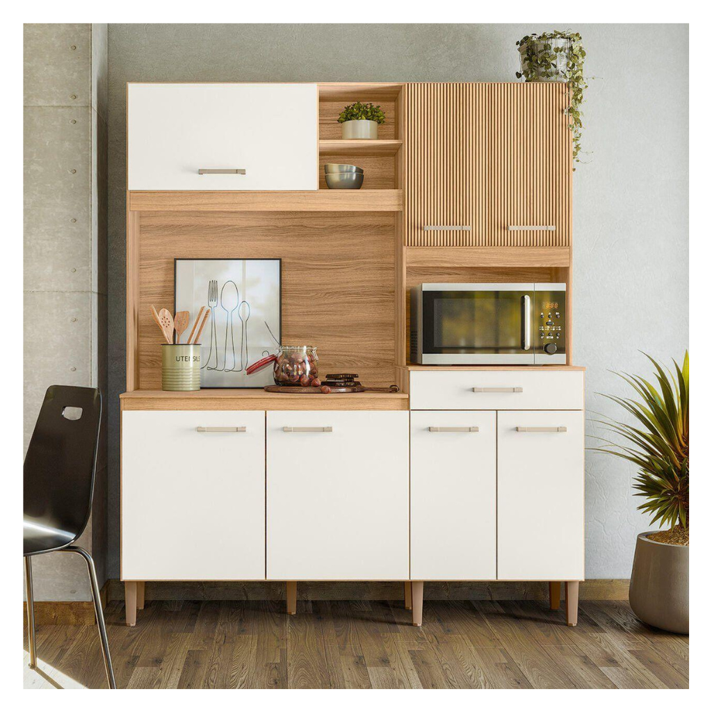 Espaço inteligente: Com um design planejado para otimizar o uso do espaço, o Kit Cozinha Nicioli Yara conta com prateleiras e divisórias que ajudam na organização e no aproveitamento máximo da área.