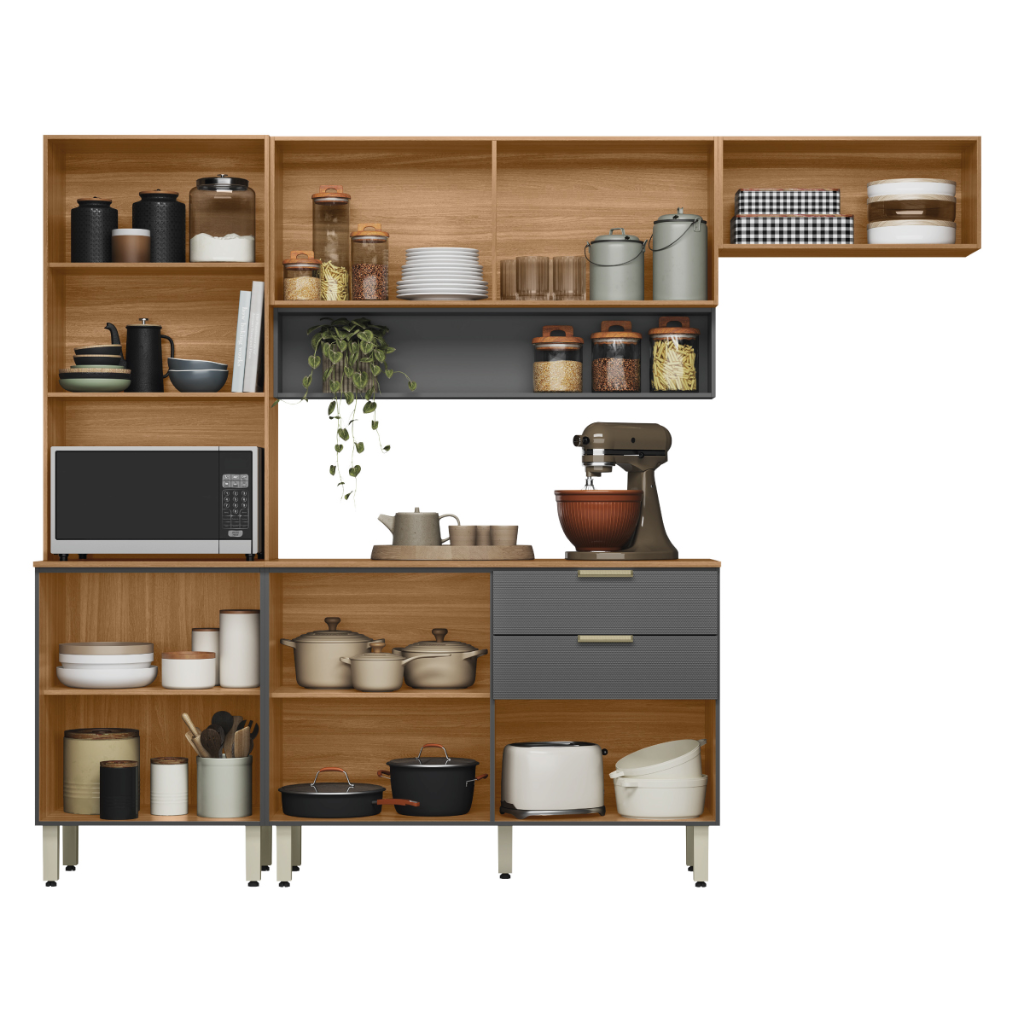 O Kit Cozinha Alba com Balcão é a escolha ideal para quem busca praticidade, elegância e funcionalidade em um só produto. Perfeito para ambientes compactos, o conjunto oferece excelente aproveitamento de espaço com design