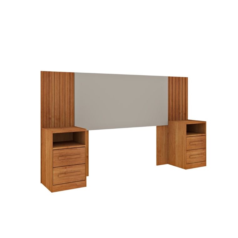Painel Pradel Suspenso Ripado 183Cm Com Duas Gavetas + Led - Freijo/Off White