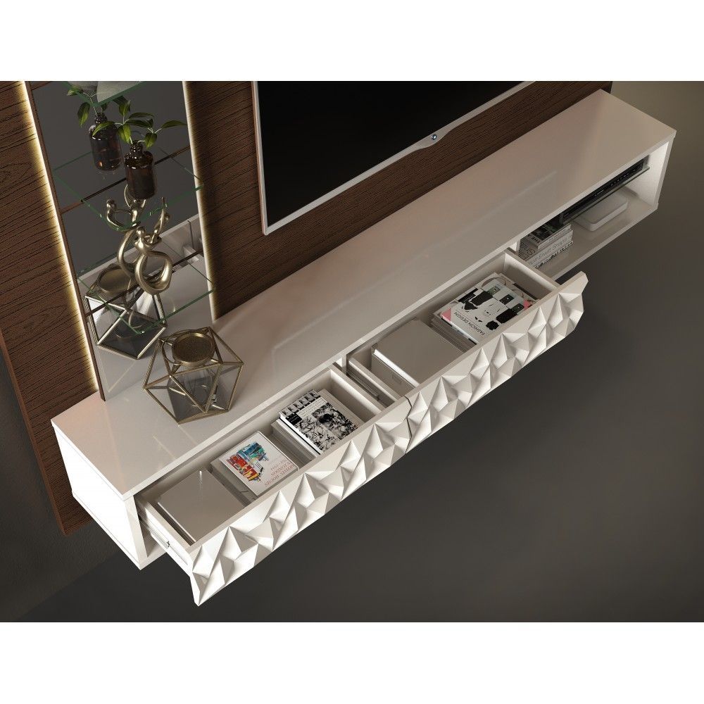 SKU 1107informações do produto O Painel Suspenso CAFFI é um produto versátil e elegante, com muita sofisticação e um design que encanta. Ele possui o acabamento DIP nas suas peças de cor amadeirada, proporcionando o delicado toque da lâmina de madeira. Vale ressaltar o design 3D das frentes das gavetas, que proporcionam um destaque e chamam a atenção pela ousadia da forma, estamos falando do 3D Form um processo feito através de revestimento laminado de alta performance, através de uma nova tecnologia de produção, além disso as gavetas ajudam a organizar aqueles objetos que você precisa guardar em algum lugar de fácil acesso, e não se esqueça de que o espaço para puxar a gaveta fica em sua parte inferior. Ao lado das gavetas se encontra um nicho com uma prateleira de vidro de 8mm, onde você pode guardar seu receptor de TV, DVD ou Videogame. O painel possui um amplo espaço para TVs de até 70 polegadas, proporcionando o melhor do entretenimento para você e sua família.Por ser um móvel suspenso, ele proporciona espaço no chão para facilitar a limpeza além de proporcionar um local para outros objetos decorativos ou pufes. O Painel Suspenso CAFFI é a escolha certa se você quer requinte e qualidade na sua sala de estar. Deixe seu ambiente mais luxuoso e confortável com este belo produto. Linha Requinte. Composta por móveis modernos, de altíssima qualidade, produzidos 100% em MDF e preços acessíveis. Diferenciais: - Produzido em 100% MDF que proporcionam melhor acabamento nas bordas e superfícies e ainda é proveniente de madeira de reflorestamento e que não coloca o meio ambiente em risco, diminuindo o desmatamento. - Revestimento DIP que garantem maior resistência, alta definição e mais vida para seu móvel. -Furação para passagem de cabos mantém os fios mais organizados e escondidos - Prateleira de vidro 8mm para acomodar DVD e aparelhos eletrônicos. - Nichos Gavetas com 25mm de espessura. - Torre de espelhos com 3 prateleiras de vidro 8mm, com iluminação lateral de fitas de LED (Opcional). - 2 Gavetas com acabamento 3D Form e corrediça telescópica, muito mais organização e comodidade para o seu ambiente. MONTAGEM: Ficará a cargo do comprador, segue junto ao produto esquema de montagem, embora seja simples, recomendamos que seja efetuada por profissional do ramo. Observação: As imagens são meramente ilustrativas não acompanhando objetos de enfeites e eletros; Todos os produtos vão desmontados e embalados; Todo o produto contém manual de montagem; Ao receber o produto verifique as condições da embalagem, havendo alguma avaria não assine o comprovante de recebimento, entre em contato conosco para orientações; Confira as dimensões do produto e certifique-se de que passarão normalmente por supostos elevadores, portas, escadas ou corredores de sua moradia; Não nos responsabilizamos no ato da entrega, caso o produto necessite de desmontagem, subir ou descer escadas ou elevadores, passar por corredores estreito, transporte por guincho para apartamento.