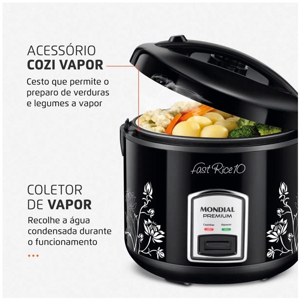eficiente. Com essa funcionalidade, o arroz é cozido de maneira mais ágil, sem