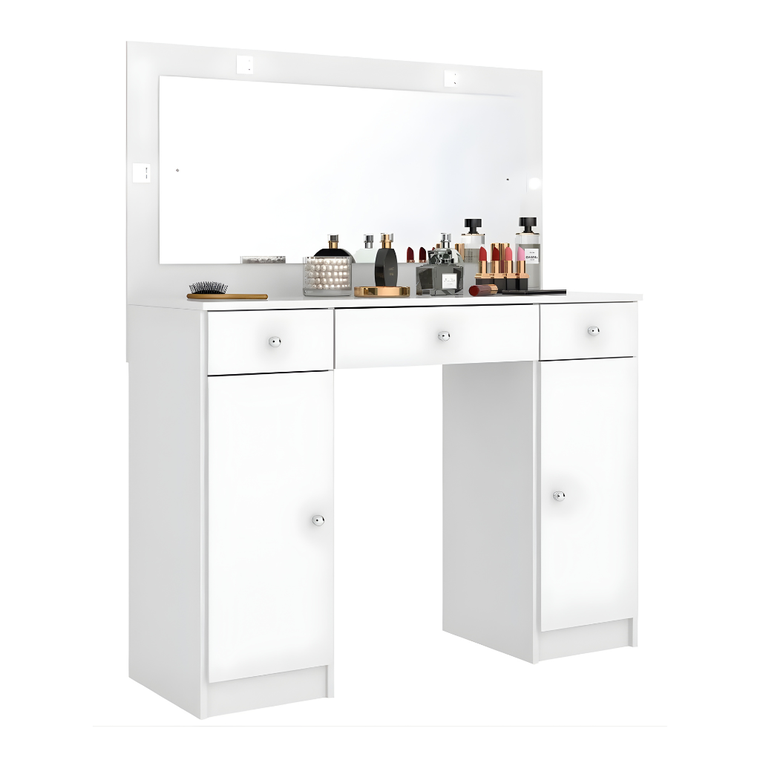 Essa penteadeira é ideal para quem deseja unir beleza, funcionalidade e organização em um único móvel. Seu espelho iluminado e seus compartimentos bem distribuídos tornam o momento de autocuidado ainda mais especial.