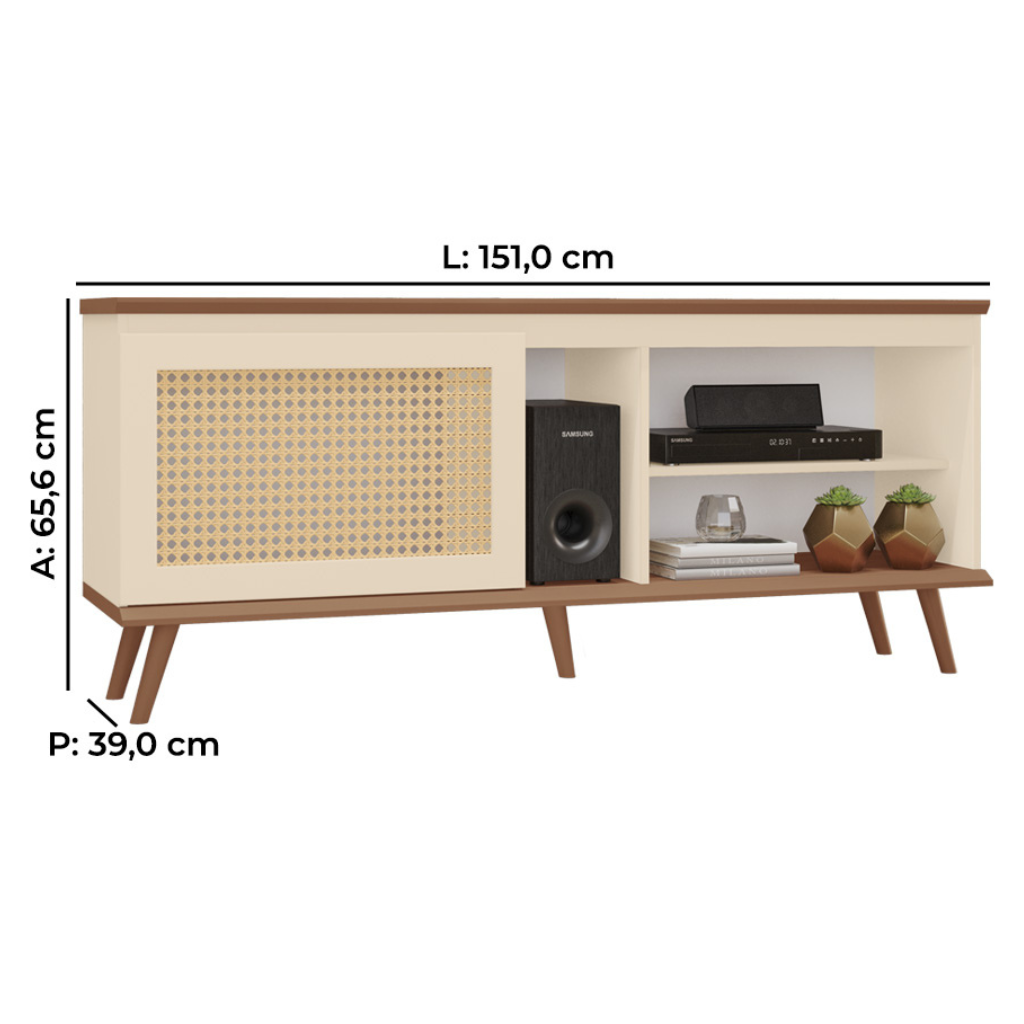 da madeira Freijó, este rack é ideal para quem busca sofisticação e