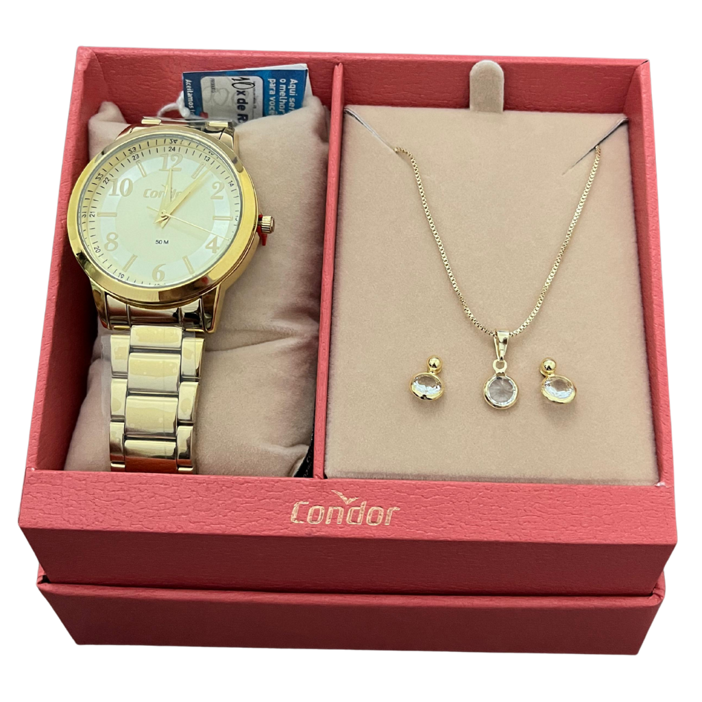 Combinando beleza, qualidade e funcionalidade, o Kit Relógio Condor Feminino Dourado CO2035MZT/K4X é a escolha perfeita para mulheres que valorizam elegância em todos os momentos. Seja para uso próprio ou para presentear alguém especial, este kit é uma opção versátil, sofisticada e cheia de estilo. Garanta já o seu e leve mais charme e pontualidade para o seu dia a dia!