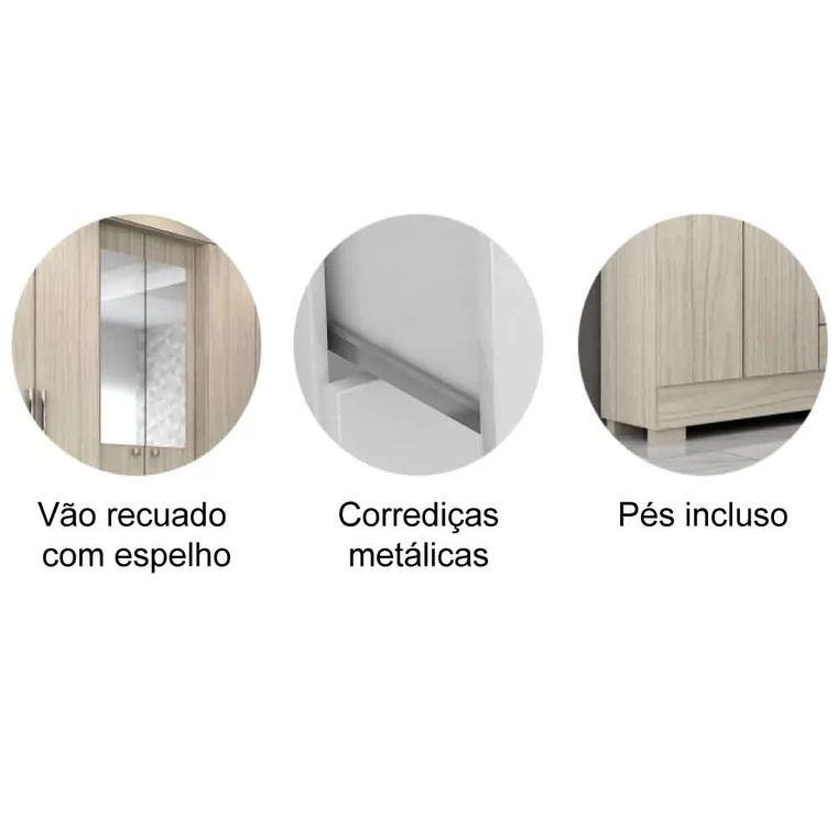 Guarda Roupas/Roupeiro Salleto Atenas 3 Portas Com Pes/Com Espelho - Sav/Off