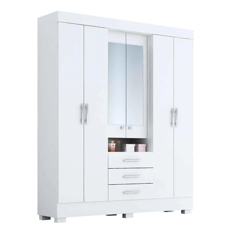 Roupeiro / Guarda Roupas Panan Cecilia 6 portas Com Pes Retangular Menor Branco