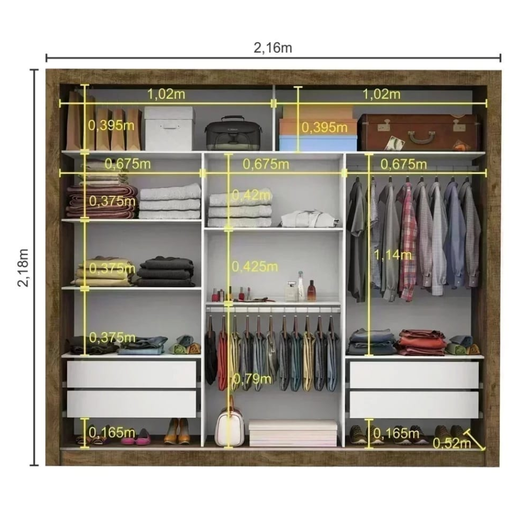 Amplo espaço interno para roupas, sapatos e acessórios
