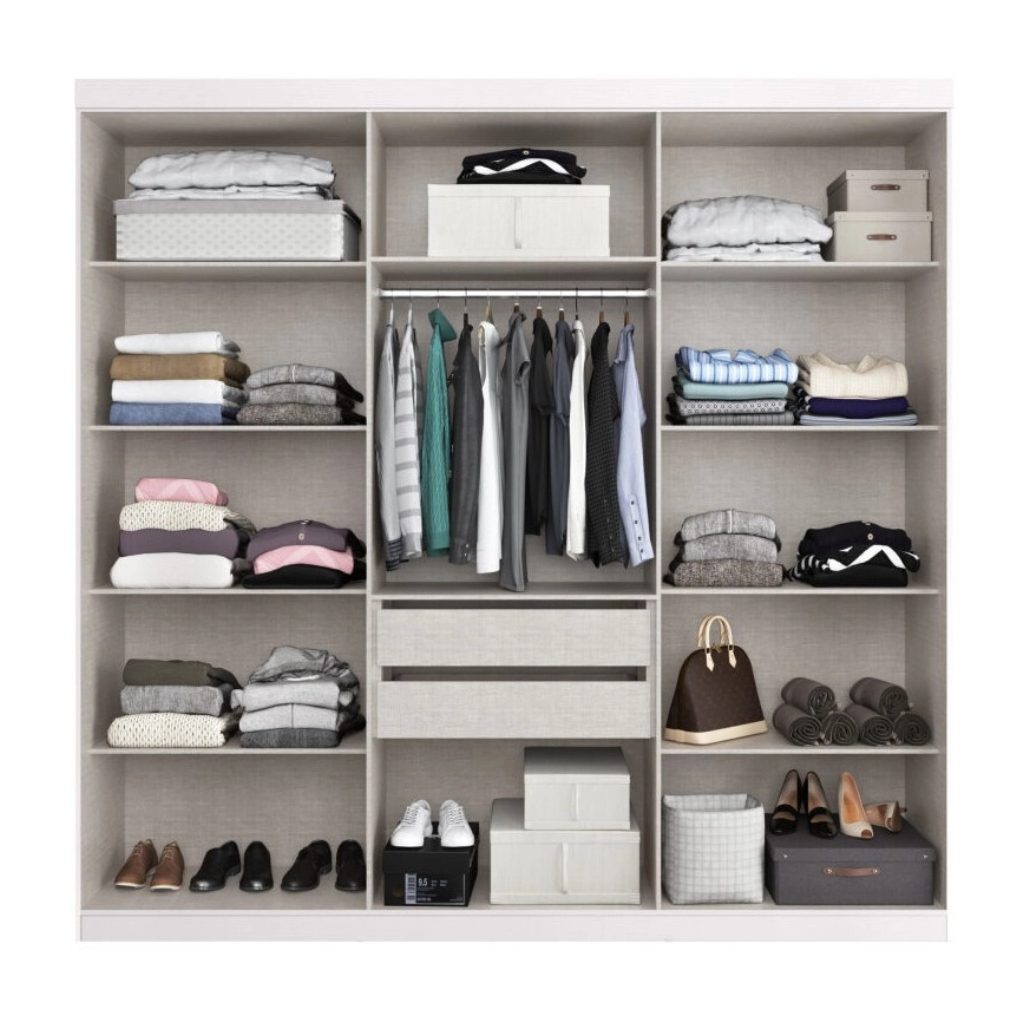Amplo espaço interno para organização de roupas, calçados e acessórios.