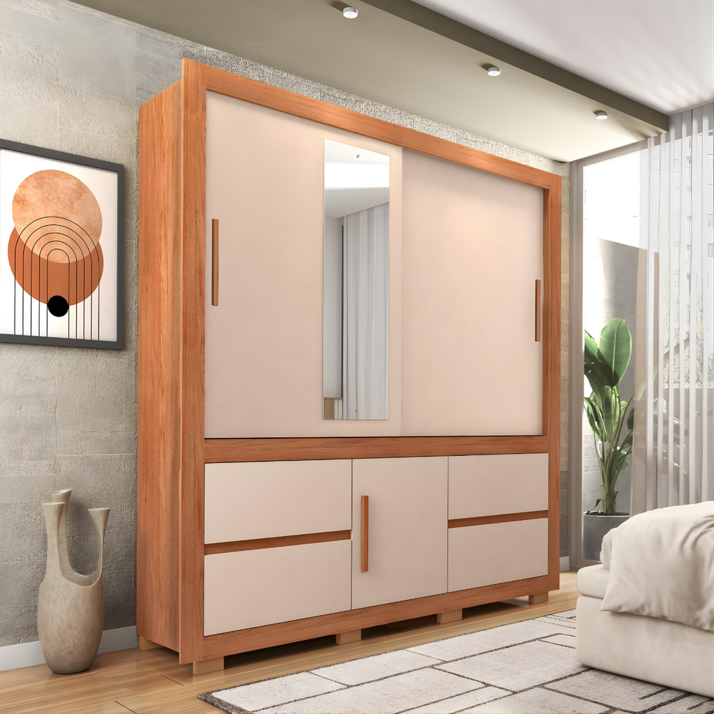 O Roupeiro Optimus Lux 1.9 com Pés e Espelho da Caemmun é uma solução completa para quem deseja um móvel funcional, resistente e com design moderno. Ideal para manter o quarto organizado e elegante, ele combina ótimo espaço interno, praticidade e acabamento de qualidade, sendo uma excelente escolha para valorizar o ambiente.