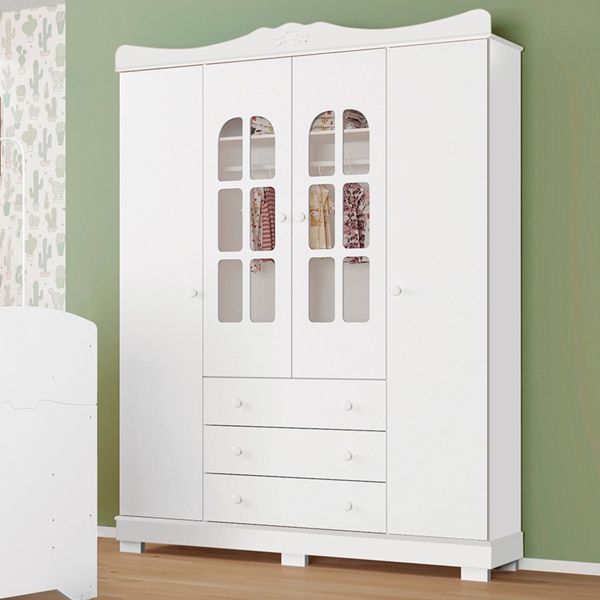 Roupeiro / Guarda Roupas Tuboarte Infantil Jade Com 4 Portas e 3 Gavetas - Branco/Branco