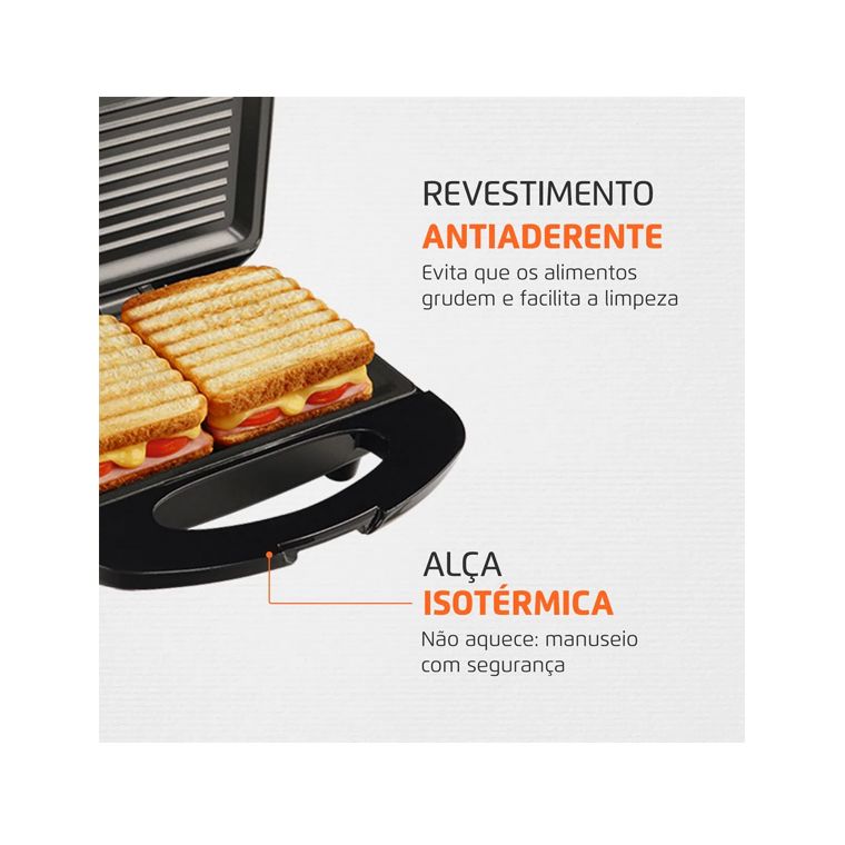 Rápido e eficiente: Prepare sanduíches em minutos, ideal para cafés da manhã ou lanches rápidos.