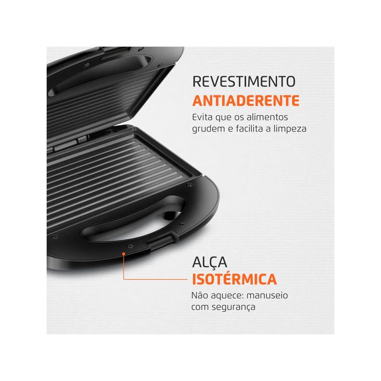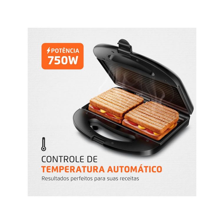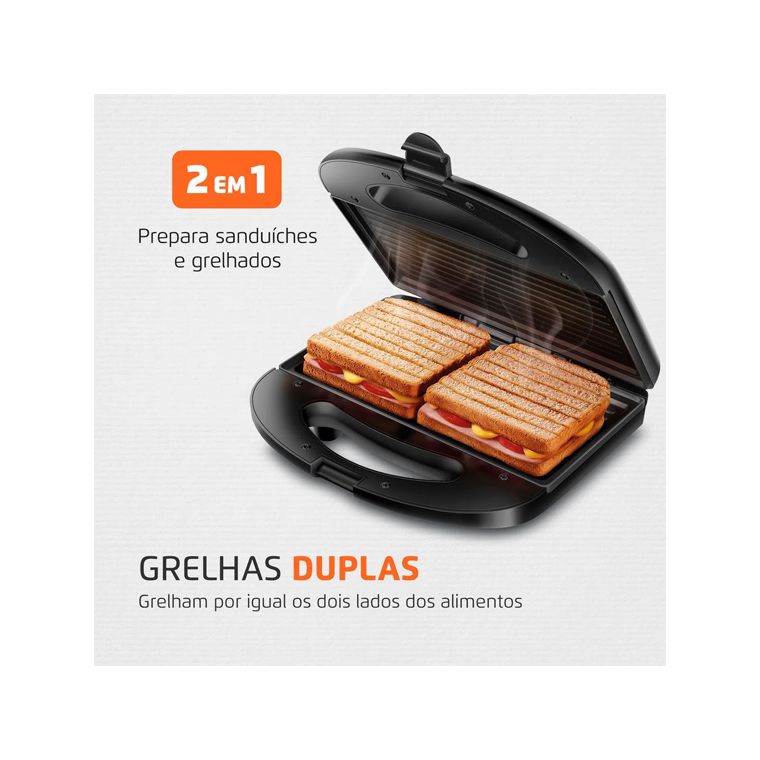Esse modelo é ideal para quem busca uma solução prática e rápida para preparar sanduíches no dia a dia, seja para o café da manhã, lanche ou até mesmo para um jantar rápido.