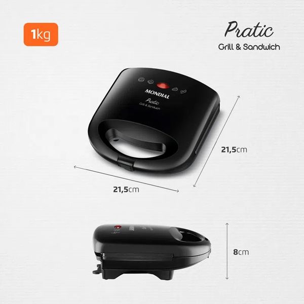 sanduíches de forma uniforme e sem necessidade de óleo ou manteiga, tornando o